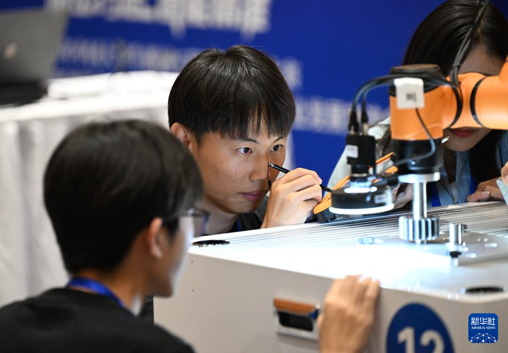 9月14日,参赛选手在比赛中调试设备。