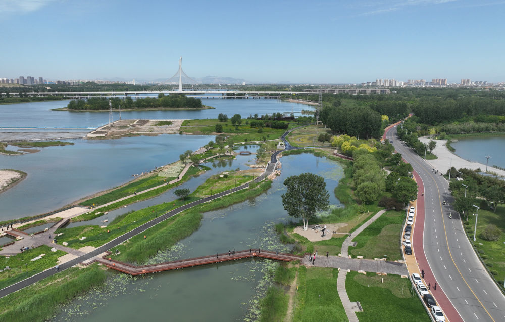石家庄市民在滹沱河生态区(城区段)休闲赏景 杨世尧 摄