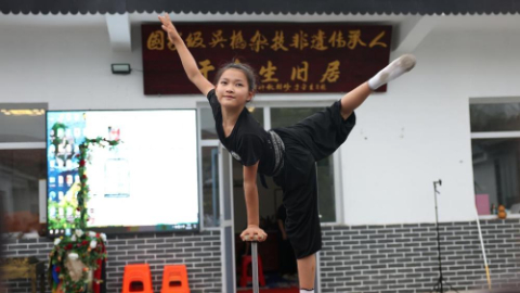 9月5日,杂技艺人在于金生杂技小院内表演。受访者供图