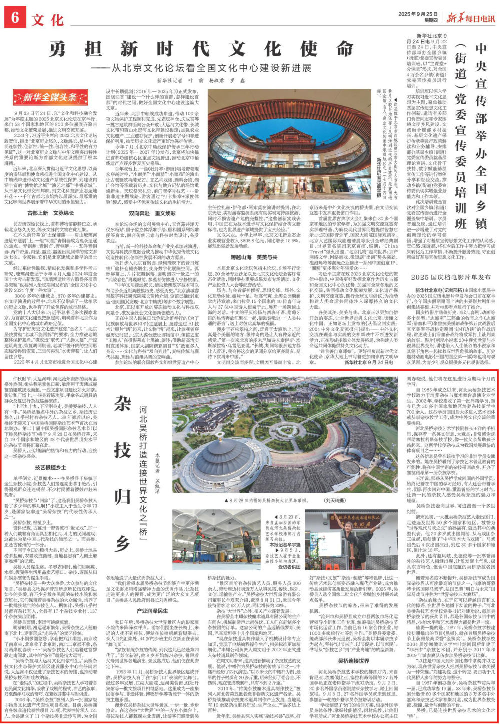 近年来,吴桥县深入实施“杂技兴县”战略,打好“杂技+文旅”“杂技+制造”等特色牌,让这一传统艺术以创新姿态融入现代产业链,成为推动县域经济高质量发展的新引擎。2025年,吴桥县入选全国第二批文化产业赋能乡村振兴试点名单。