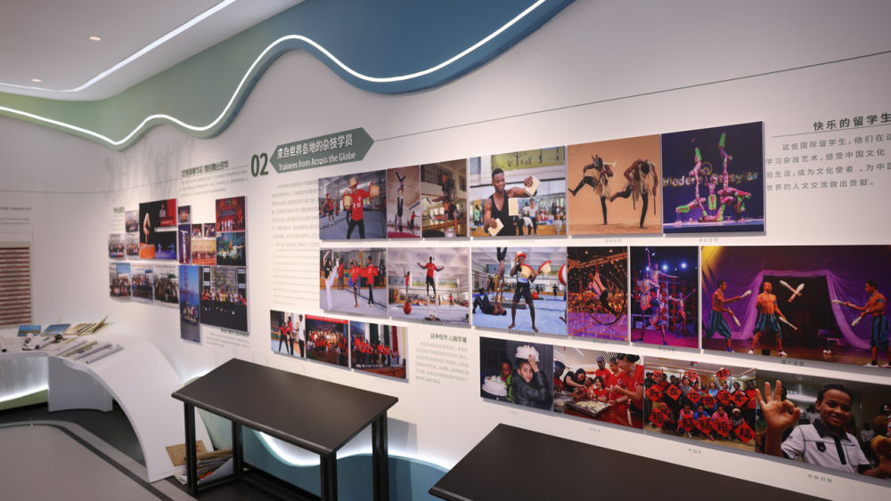 河北吴桥杂技艺术学校的展馆内,展示着来自世界各地的杂技学员照片。受访者供图