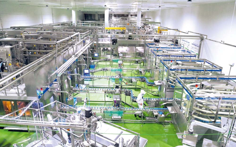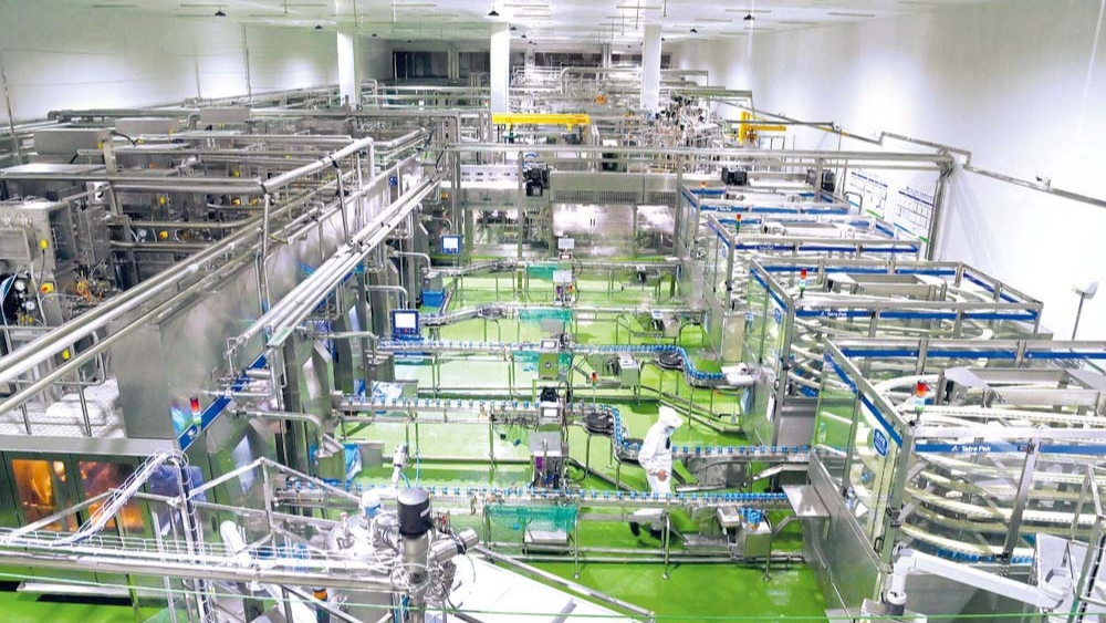 君乐宝乳业集团现代数智化生产线正在生产企业自主研发的酸奶。记者 张震 摄