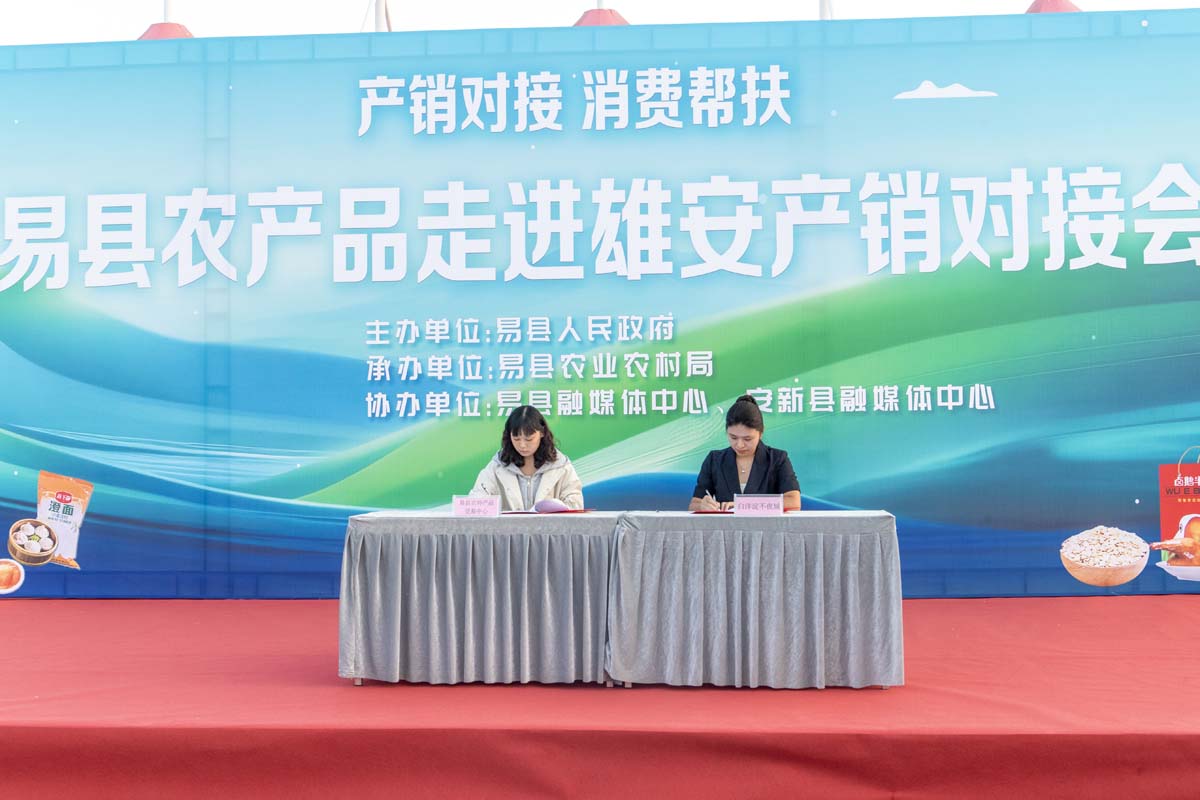 产销对接会上,易县农业农村局、易县独乐乡相关负责人重点推介了当地特色农产品。白洋淀不夜城与易县农特产品交易中心签订了农产品购销框架协议。