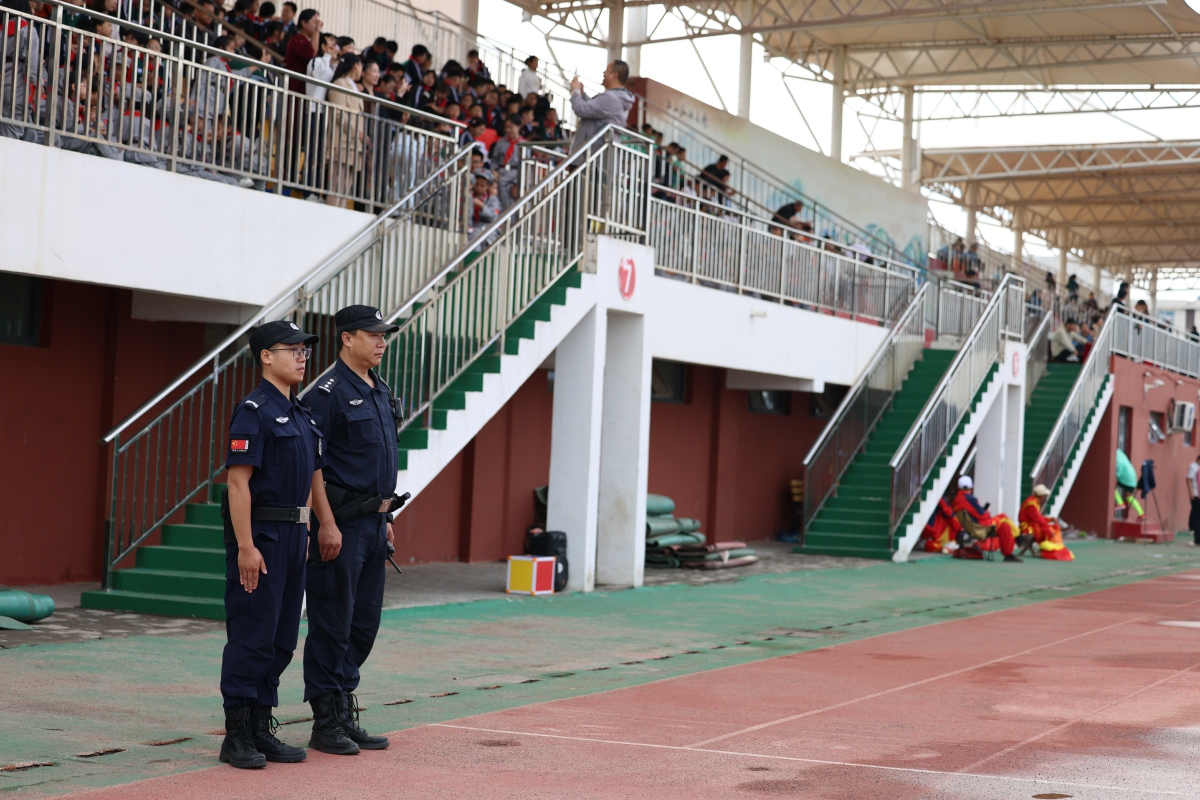 新河县公安局辅警在赛场周边执勤。李世强 摄