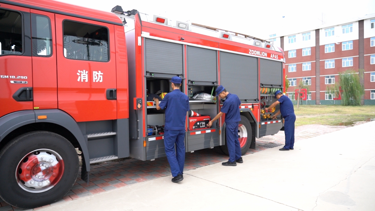新河县消防救援大队工作人员整理消防器材。赵玉 摄