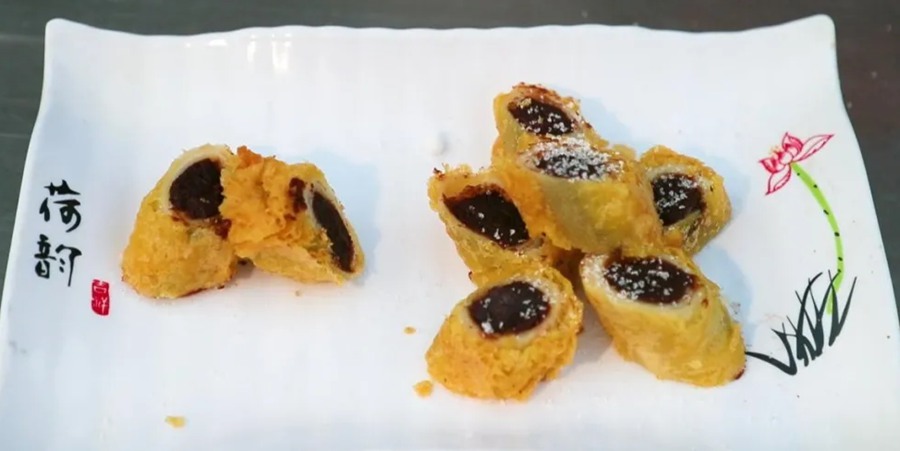 炸千子以豆沙为馅料,味道偏甜,口感酥脆,既可以当主食,也可作小吃零食。