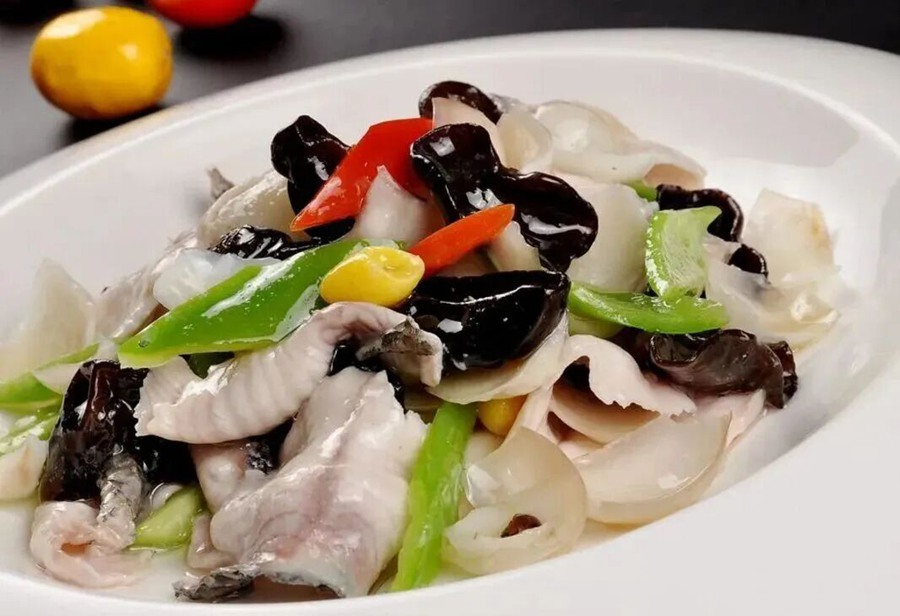 熘鱼片是白洋淀一道色香味俱全的传统名菜。此菜选取白洋淀黑鱼肉进行制作,刀工、火候、造型均极考究,技术难度较大。切鱼片时刀要快,否则容易把鱼片弄碎。鱼片薄而形美,色泽洁白,食之鲜嫩滑爽,是白洋淀特色风味代表菜之一。