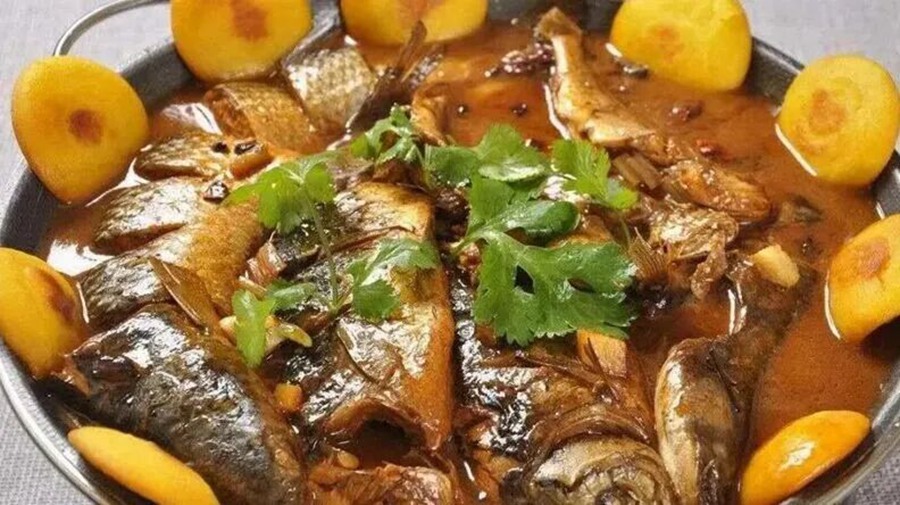 白洋淀炖杂鱼选取白洋淀鲤鱼、黑鱼、鲶鱼、嘎鱼、泥鳅进行炖制,后续加宽粉,装盘后加入手工玉米饼子即可。鱼肉鲜嫩,饼子香脆,吃到嘴里,暖到心里。