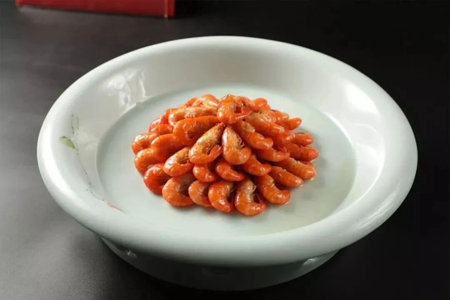 红亮鲜艳的“白洋淀烹㸆虾”为白洋淀传统美食之一,质感酥脆,吃起来微甜适口,食材为白洋淀河虾。