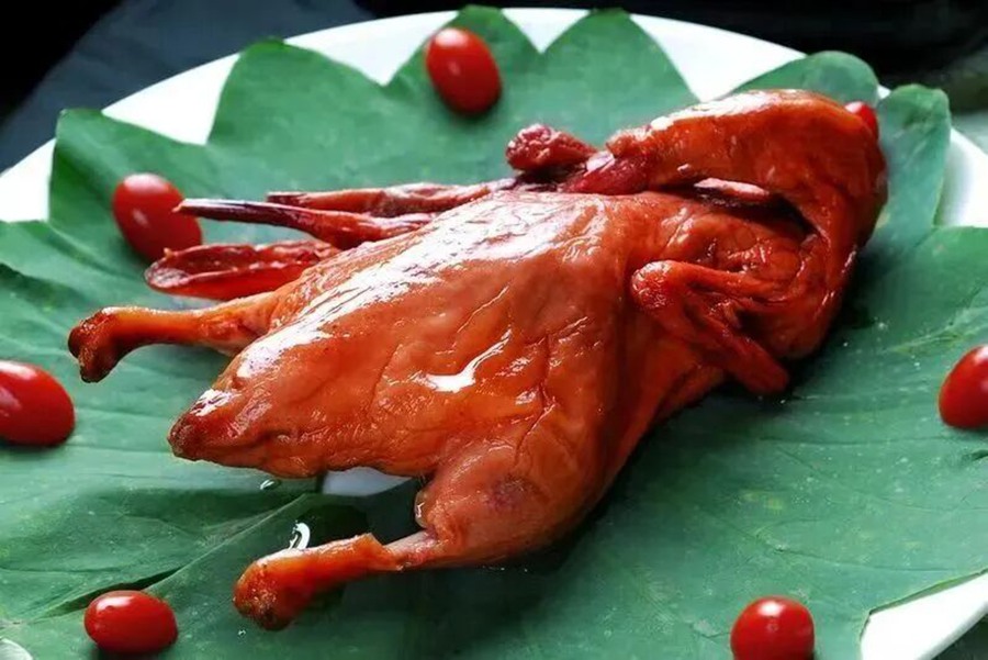 荷叶鸭其实是酱卤鸭,其制品色泽自然,野味香浓,瘦而不柴,清香味醇。