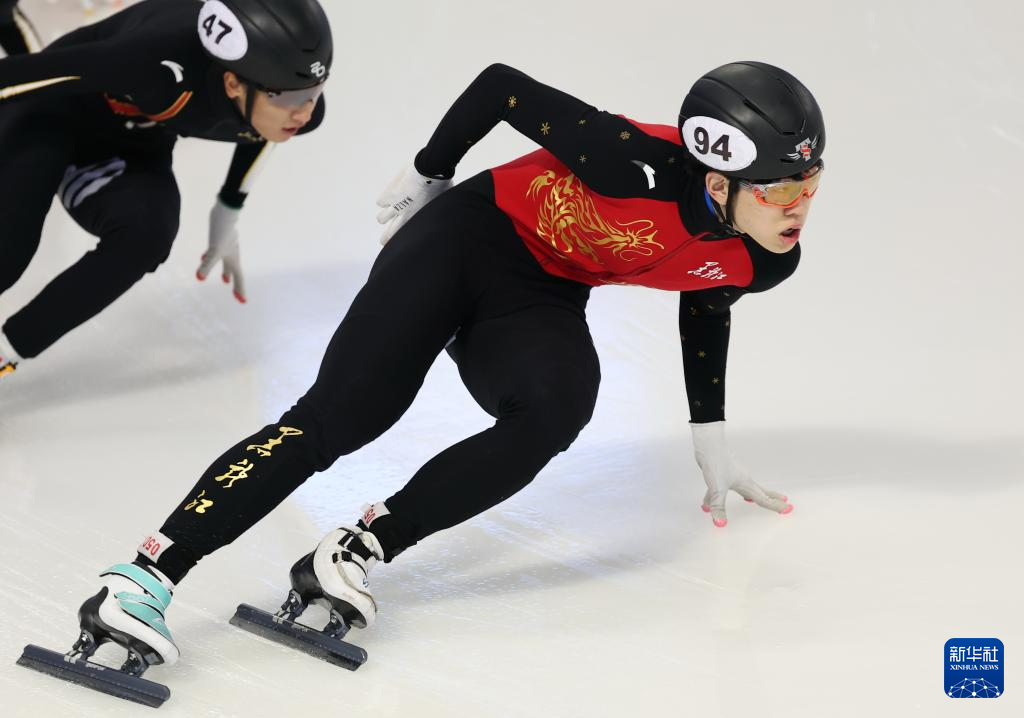 10月12日,黑龙江省冰上训练中心选手王天佑(前)在甲组男子1000米决赛中。最终,他夺得冠军。