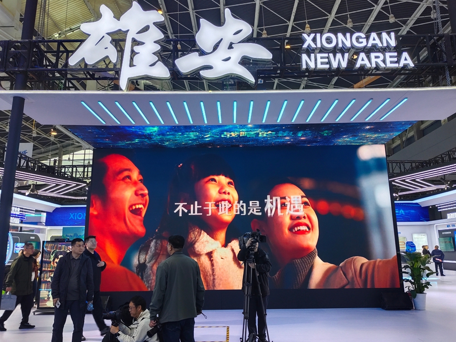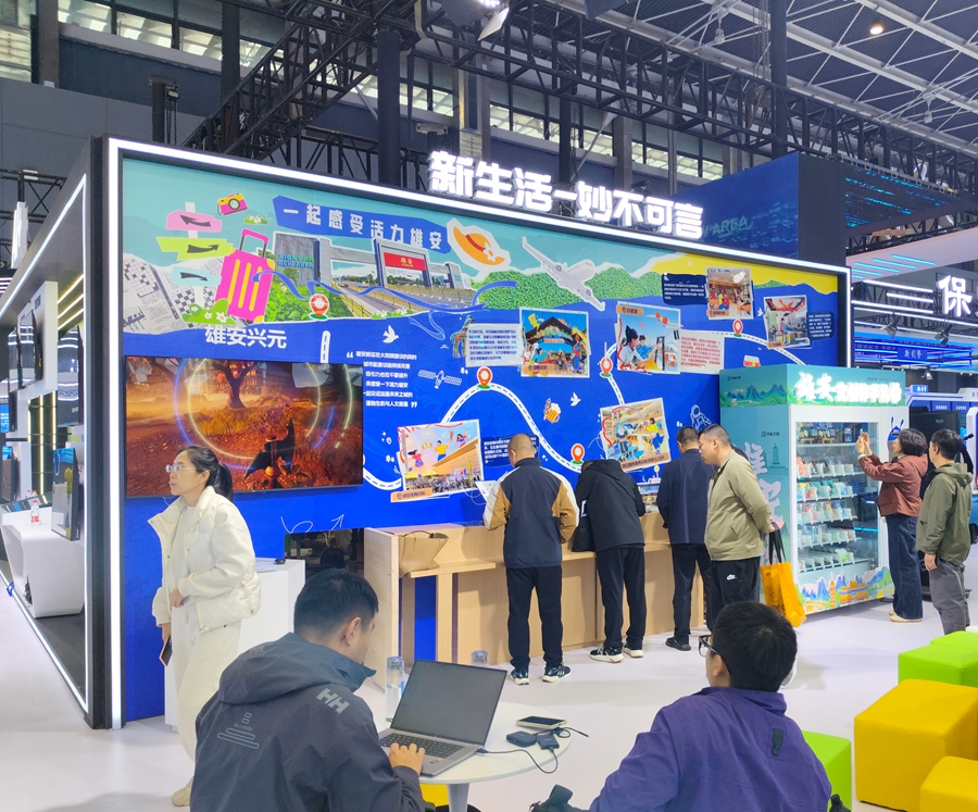 “新生活-妙不可言”篇章生动展现了雄安新区宜业宜居的美好场景。新区通过一幅雄安三县手绘地图,展示了从白洋淀景区到雄安郊野公园,从雄安图书馆到雄安站的优美生态环境和完善公共服务。地图两侧,中国星网、中国中化等央企总部与北京四所疏解高校雄安校区交相辉映,展现了国家战略力量与青春创新动能的完美融合。独具雄安特色的“雄安文创伴手礼箱”,通过数字赋能将白洋淀芦苇画、雄安非遗等传统文化元素以更时尚、更互动的方式呈现,让每位来访者都能把“数字雄安”的记忆带回家。