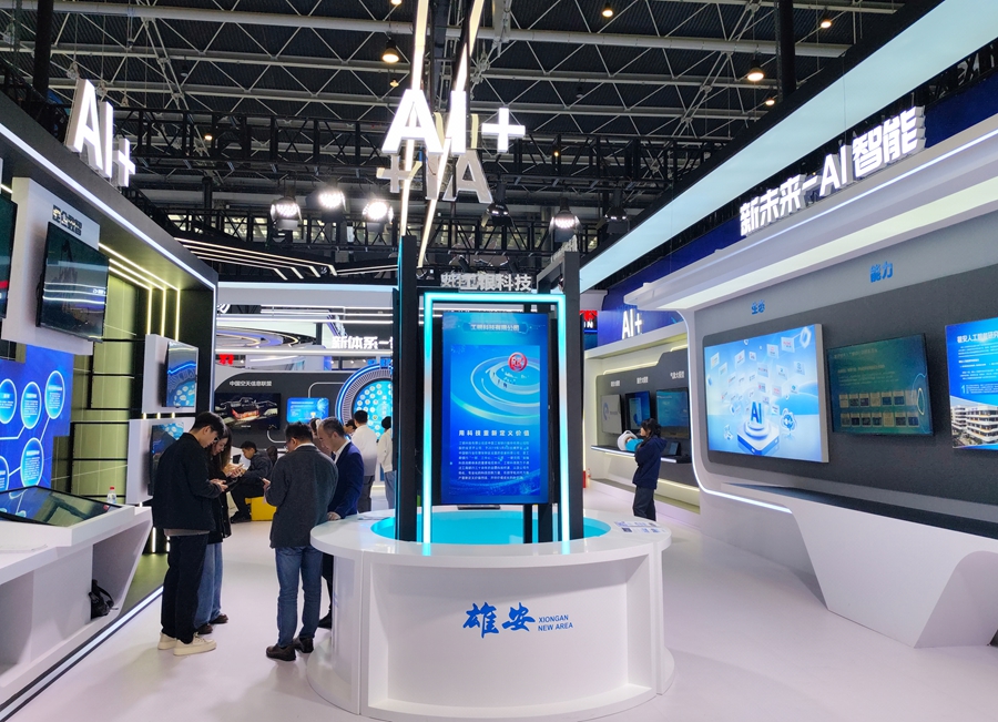 “新未来-AI智能”篇章描绘了雄安在人工智能领域的发展蓝图。目标是到2027年培育5家独角兽企业、100家AI骨干企业和20个省部级以上高能级创新平台。新区通过位于启动区的人工智能综合实训基地和由院士领衔的雄安人工智能研究院两大核心载体,以及采用“1+1+N”架构的雄安城市人工智能公共服务平台,为城市数字化转型提供全栈式AI服务。现场还展示了雄安气象人工智能创新研究院的精准气象预测模型、安影科技的医疗大模型以及雄安未来之城场景汇的大模型场景应用共享工厂等垂直领域应用。