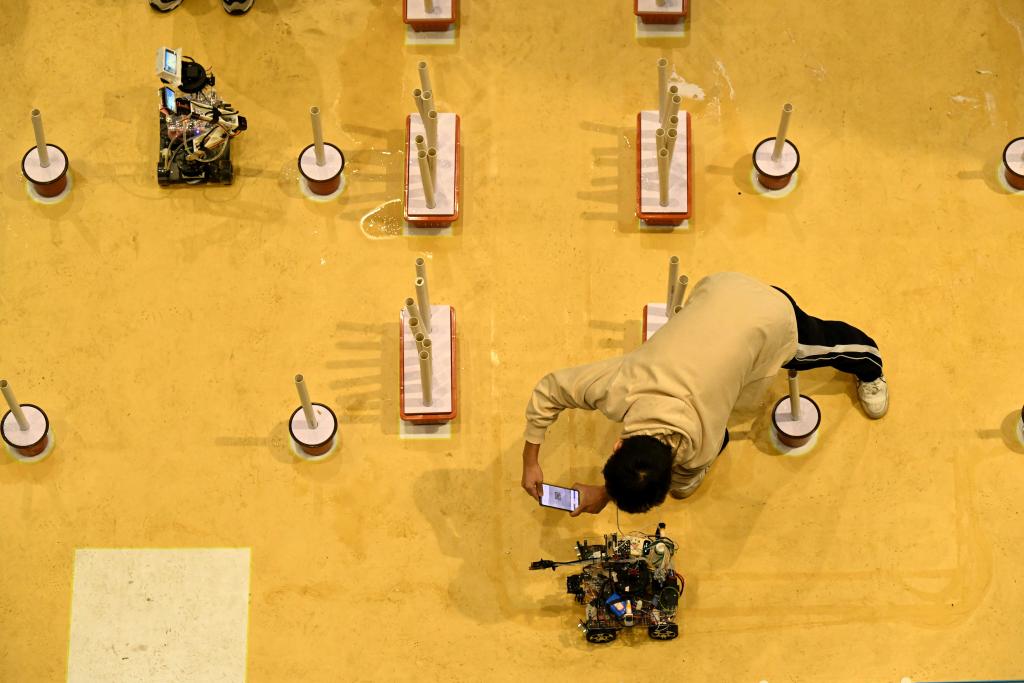 10月17日,参赛选手在河北省石家庄国际会展中心进行赛前调试。