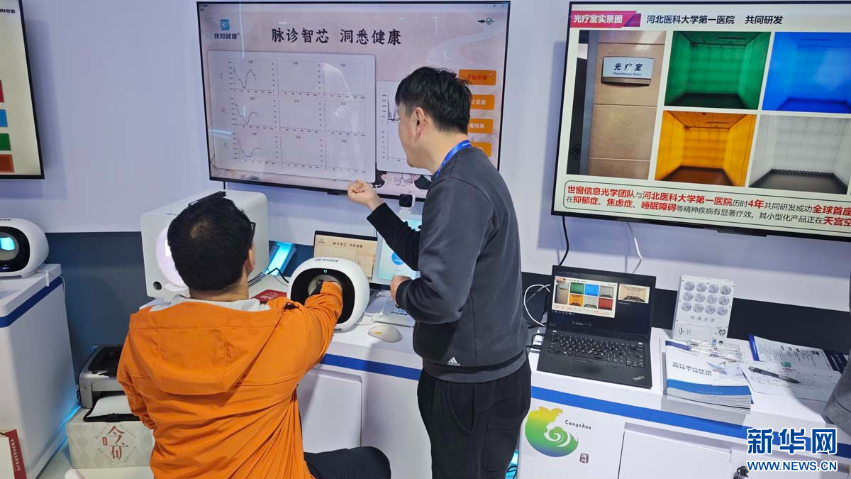 在医疗方面,中医的望闻问切,如今也有了智能助手。在世窗信息股份有限公司展区,参观者用中医AI脉诊仪为自己做检测。片刻后,包含寸脉、关脉、尺脉等信息的数据便呈现在屏幕上。