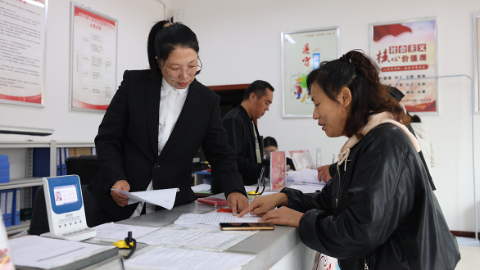新河镇行政综合服务中心工作人员为居民办理业务。李世强 摄