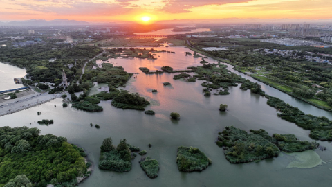 因地制宜,合理布局水系,针对重点河段利用堰体形成大水面,一般河段布置溪流区,设置必要输水通道,加大生态补水力度,实现“小水”能留、“大水”可渗,形成生态水面2922公顷。通过栽植水生植物、主河槽内改良土壤、人工建造栖息地,探索保持水体生物多样性,构建健康可持续的河流生态。