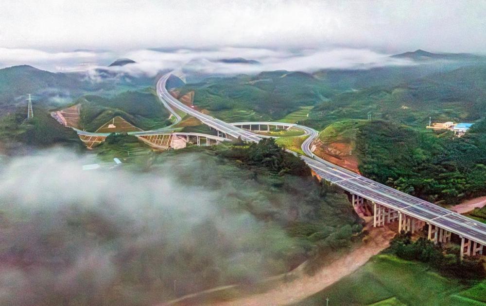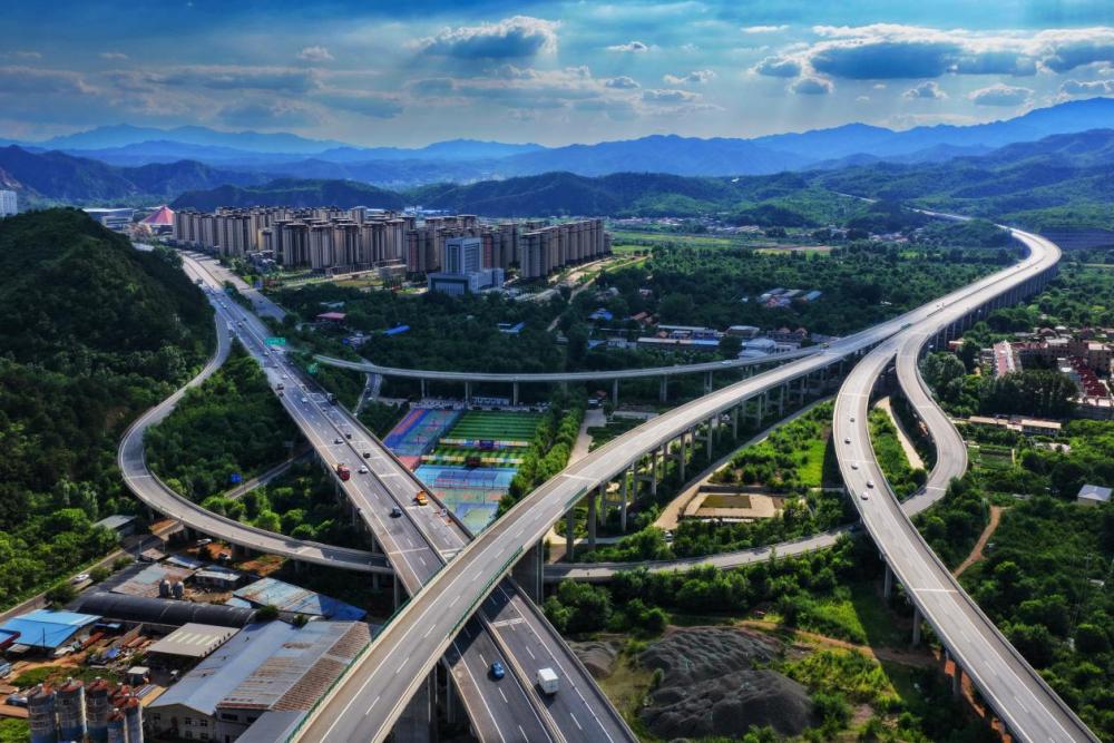 ↑河北省承德市境内的镇广高速与长深高速交汇处。(2025年7月6日 赵淑娟 摄)