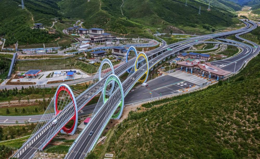↑延崇高速张家口市崇礼区太子城互通式立交桥。(2022年7月16日 张旭 摄)