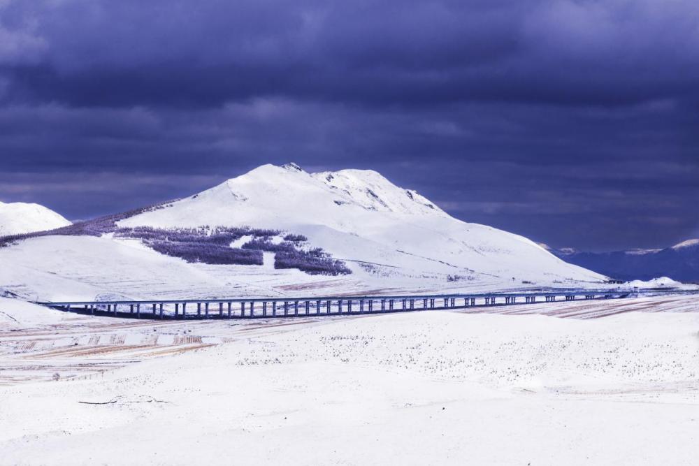 ↑延崇高速张家口市赤城县砖楼特大桥。(2022年3月12日 许浩鑫 摄)