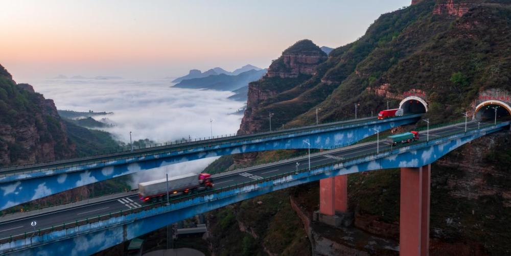 ↑河北省邢台市境内的邢汾高速。(2020年8月13日 韩文洲 摄)