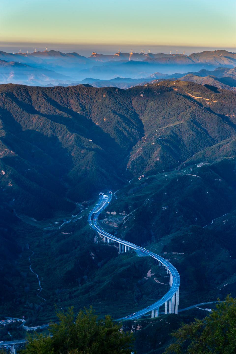 ↑河北省承德市境内的承唐高速(照片有饱和度处理)。(2021年8月10日 何庆新 摄)