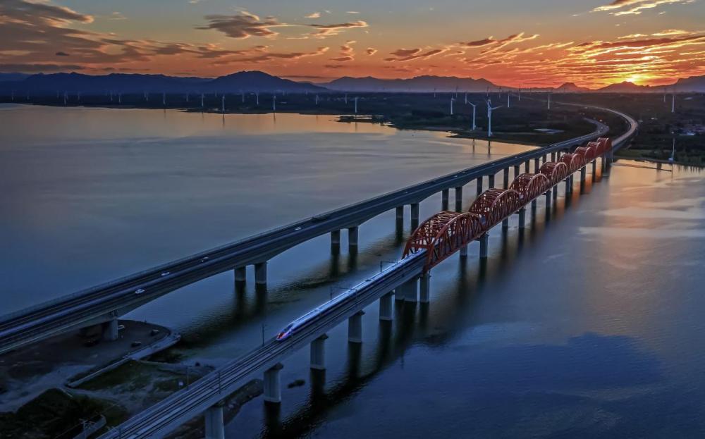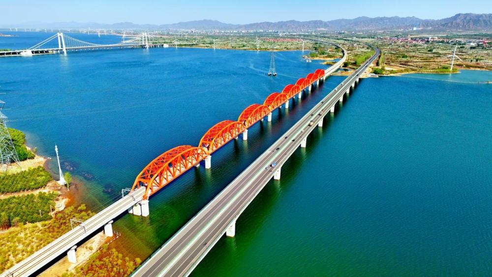 ↑京藏高速张家口市怀来县官厅水库大桥。(2025年4月21日 迟国正 摄)