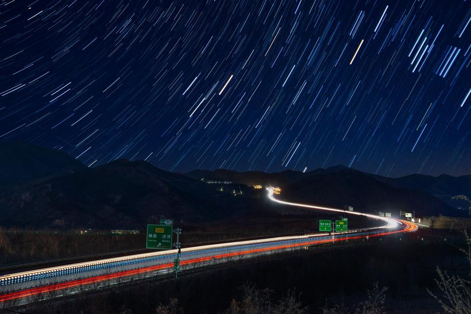 ↑延时法拍摄下的太行山高速西阜保定段。(2025年2月1日 陈之忠 摄)