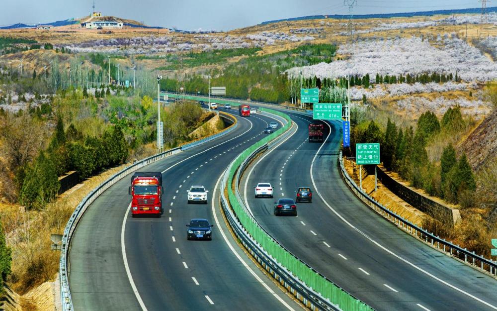 ↑河北省张家口市境内的京藏高速。(2019年4月16日 柳新芳 摄)