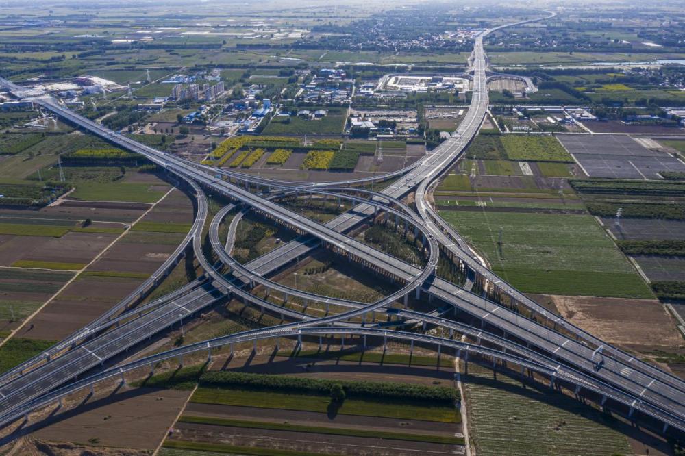 ↑河北省邢台市境内的邢衡高速与京港澳高速交汇处。(2025年6月22日 王宪臣 摄)