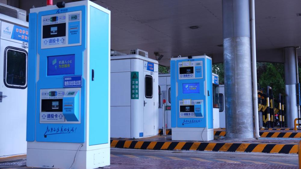↑京哈高速秦皇岛东收费站内的智能收费机器人。(2025年7月14日 李贺 摄)