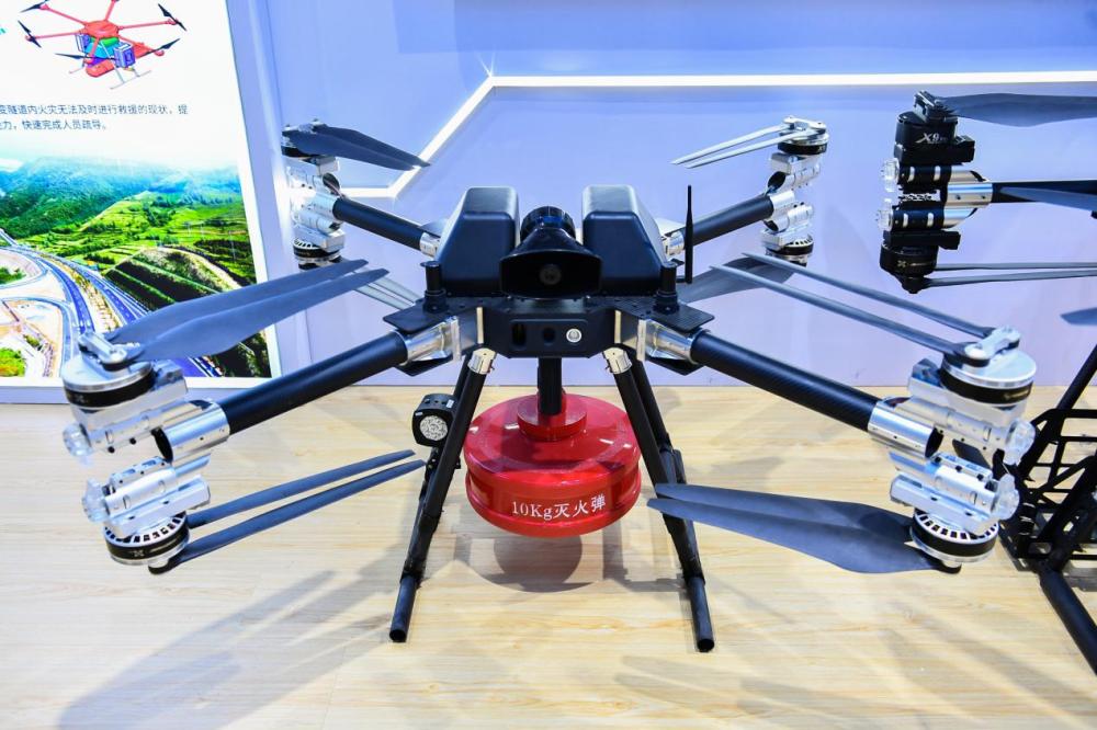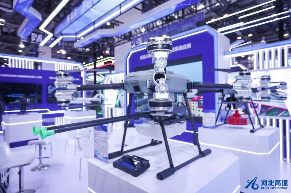 ↑在第二十五届中国高速公路信息化大会暨技术产品博览会展示的河北高速公路隧道应急处置无人机。(2023年3月30日 赵雨璇 摄)