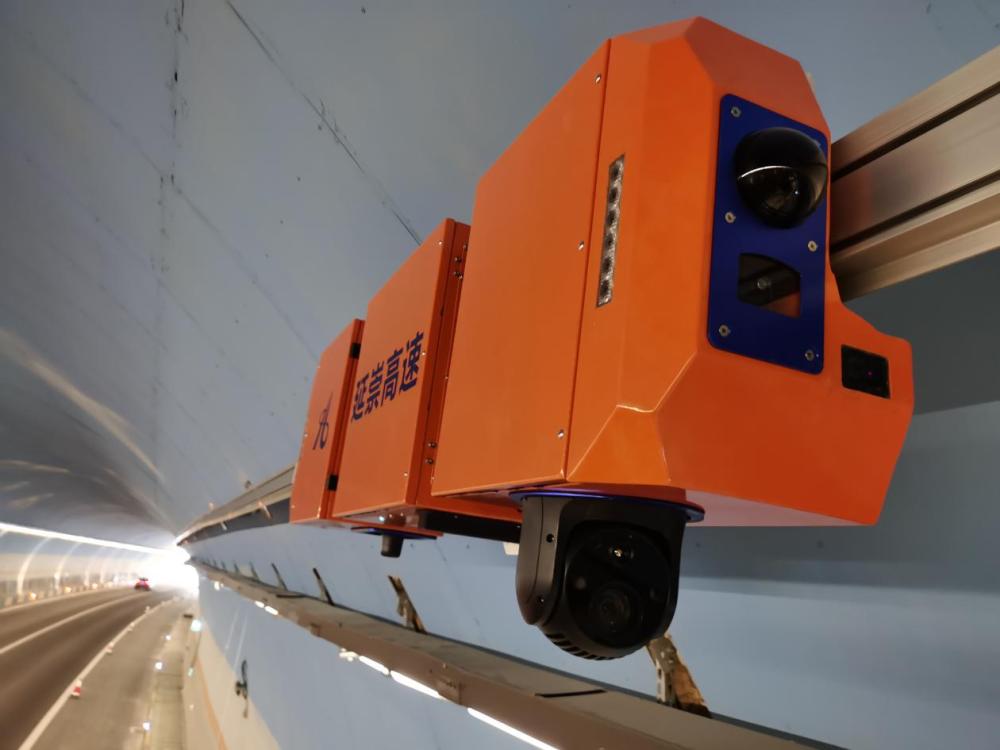 ↑延崇高速金家庄螺旋隧道内的智能巡检机器人。(2024年3月13日 郭洪杰 摄)