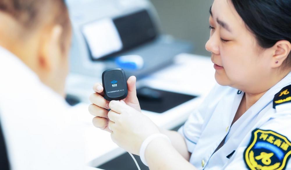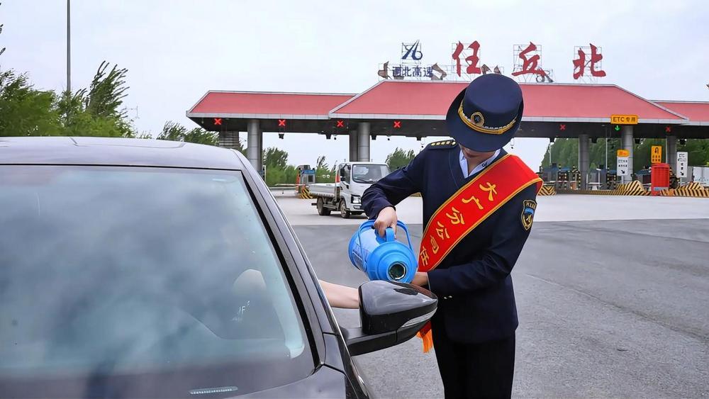 ↑在大广高速任丘北收费站,工作人员在为司乘服务。(2025年6月6日 毛皓 摄)