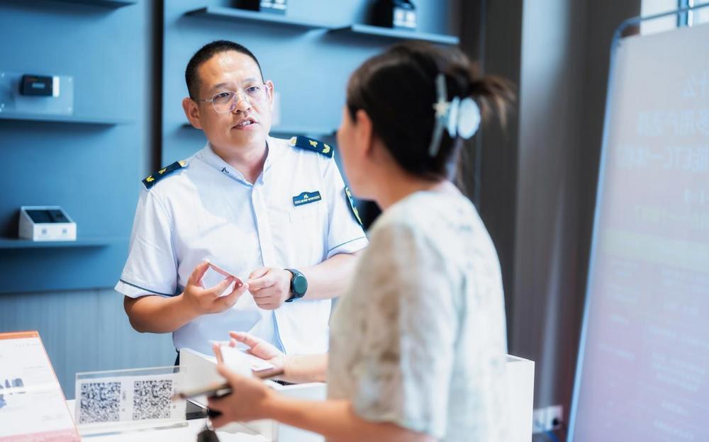 ↑在河北省石家庄市鹿泉区ETC龙泉路客服中心,工作人员在为司乘解答ETC办理问题。(2025年7月16日 封东飞 摄)