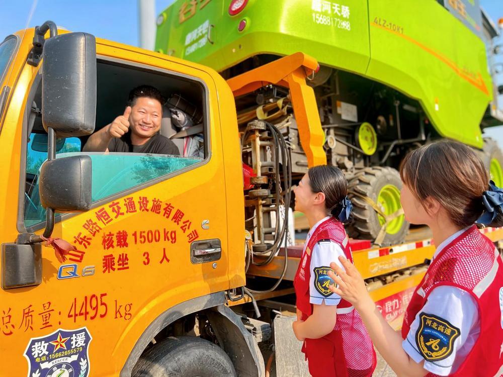 ↑在大广高速尚村收费站,工作人员在为司乘讲解三夏助农政策。(2025年6月2日 于松涛 摄)