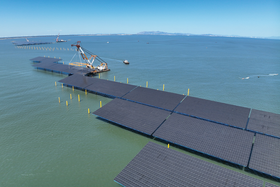 为应对复杂海况,项目团队研发了新型定位稳桩系统,通过高精度定位技术,将巨大结构的安装误差控制在极窄的厘米级范围内;项目创新采用高分子复合材料边框,显著提升了光伏设备在高盐高湿环境下的耐久性与使用寿命;团队精心绘制“海上交通图”,精准避让秦皇岛港主航道,同时为当地渔民预留出熟悉的渔船通行通道,实现了光伏发电与航运、渔业的和谐共生。