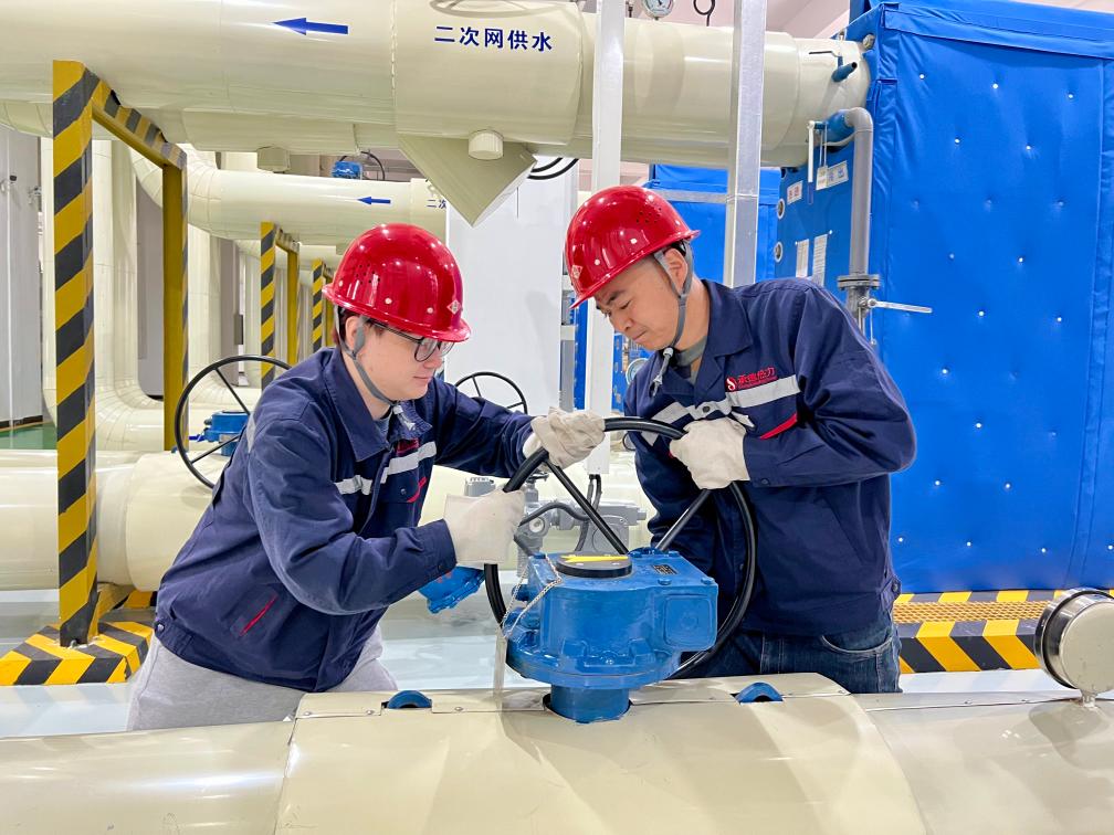 承德热力工作人员在调试供暖设备。(受访者供图)