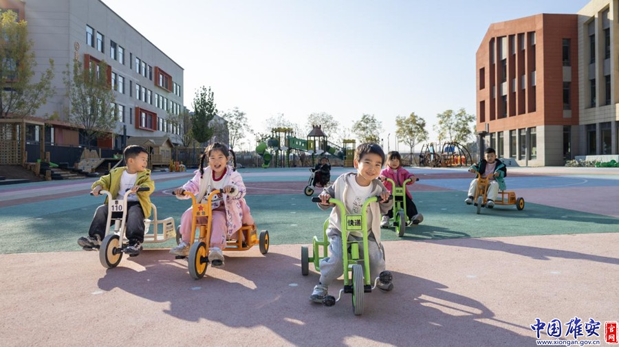 雄安雄东长宁幼儿园的孩子们在快乐地玩耍。中国雄安官网发