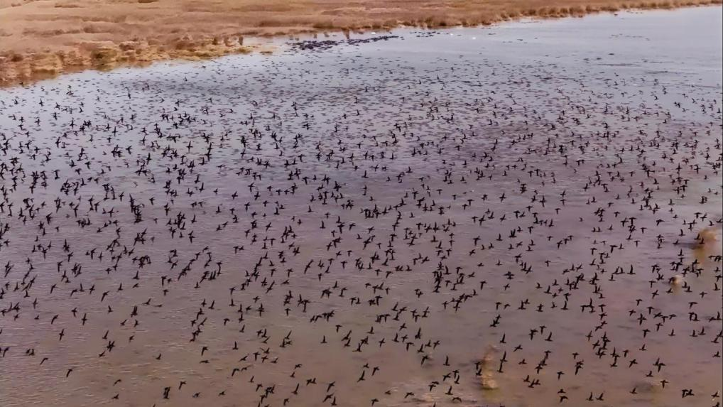 近日,河北省沧州市南大港湿地迎来候鸟迁徙高峰,大量国家二级保护鸟类花脸鸭齐飞的壮观景象尽显自然之美。数据显示,当前在此栖息的花脸鸭种群已增至近万只,这一数据直观印证了南大港湿地在生态保护与修复工作中取得的成效。(田金蕊、刘冲、宋文峰 沧州广播电视台供稿)