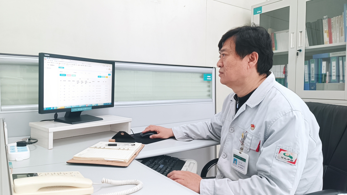 老马向同事演示平台智能预警功能,动态展示证件到期、库存阈值等风险提示。赵婧娴 摄
