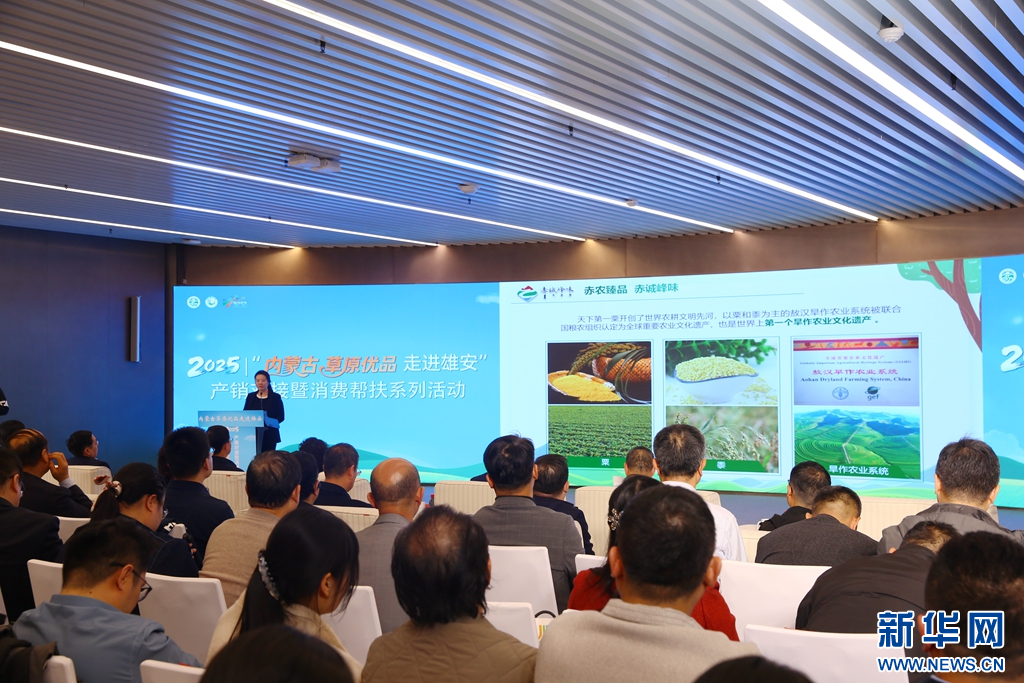 11月22日,2025“内蒙古草原优品走进雄安”产销对接暨消费帮扶系列活动启动仪式在雄安会展中心举行。新华网 李倩摄
