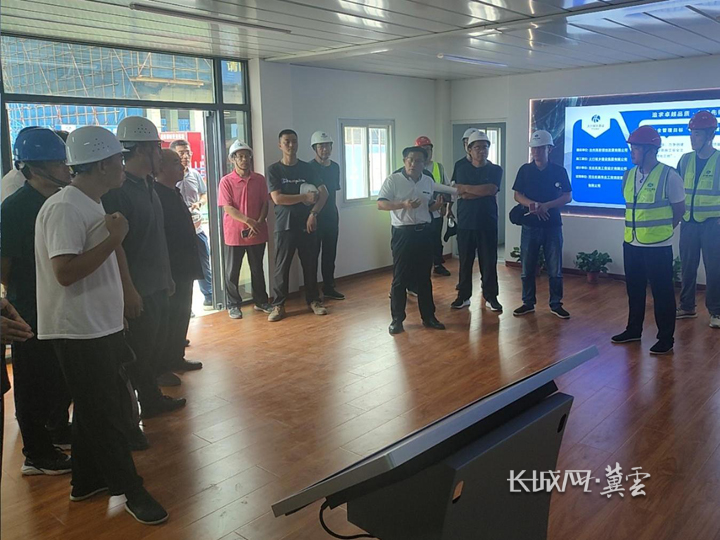 以党建引领科技创新,应急公司将技术升级与绿色发展理念融入项目建设全过程,推动基建模式向智慧化、高效化转型。项目临时党支部组织党员技术骨干,聚力打造智慧工地管理系统,构建起进度管控、安全监管、质量追溯、劳务管理、设备管理五大智能统筹模块——进度管理实时比对计划与实际进展并自动预警,质量管理实现数据化记录与全程追溯,劳务管理精准统计人员出勤及作业信息,设备管理远程监控运行状态并提前预警故障,项目智能化建设水平达到行业先进标准。2025年8月,沧州高新区智慧工地经验交流活动在该项目成功举办,相关创新实践在区域内形成鲜明示范效应,沧州市高新区住建局领导评价该系统兼具“优越性、引领性、实用性”。