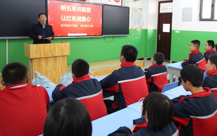 近日,河北省邢台市新河县老干部局、新河县关心下一代工作委员会组织“五老”宣讲团成员走进新河董振堂红军中学,开展红色文化宣讲活动,向学生讲述红军将领董振堂的革命事迹,传承红色基因,厚植爱国情怀。