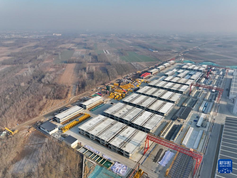 这是中铁十一局石雄铁路2标段安国制梁场(12月23日摄,无人机照片)。