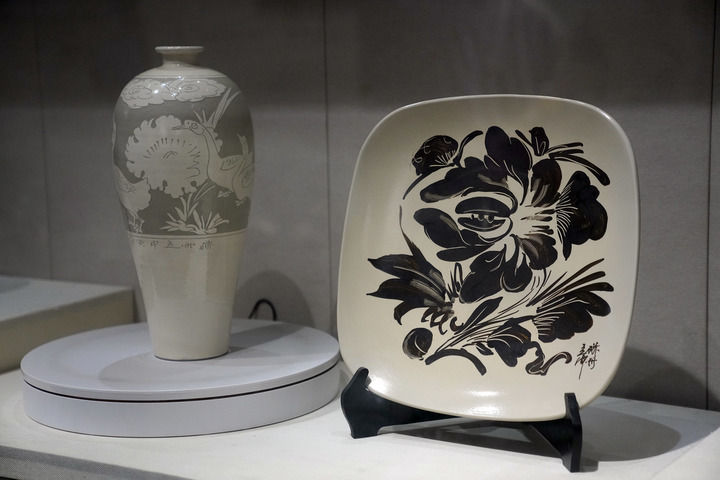 刘立忠工作室展厅里的磁州窑展品。新华每日电讯记者赵鸿宇摄