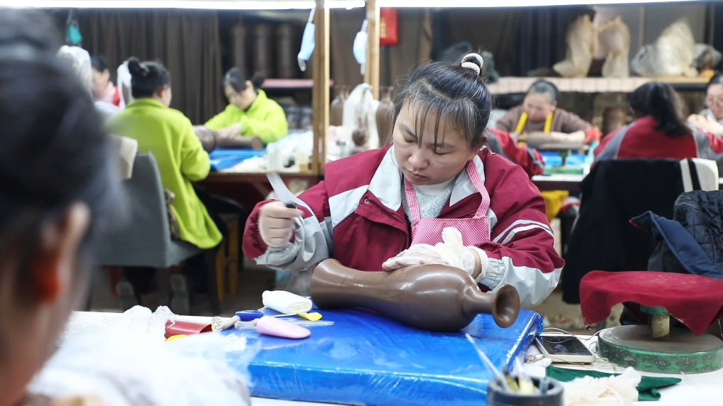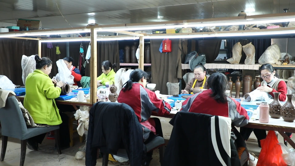 近日,河北省馆陶县一家黑陶生产车间内,工人们正有条不紊地开展拉坯、绘画、砑光、雕刻等工序,车间内一派繁忙有序的生产景象。