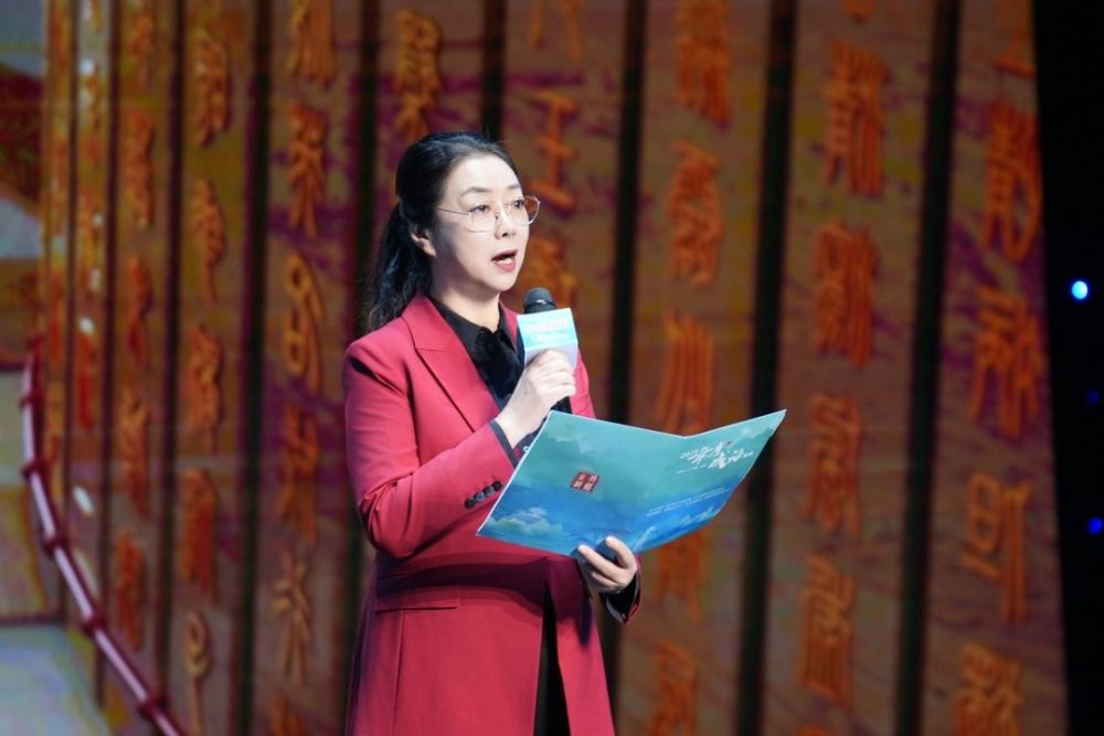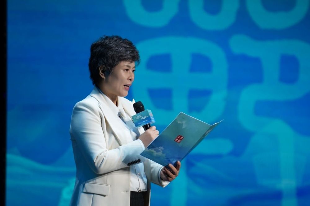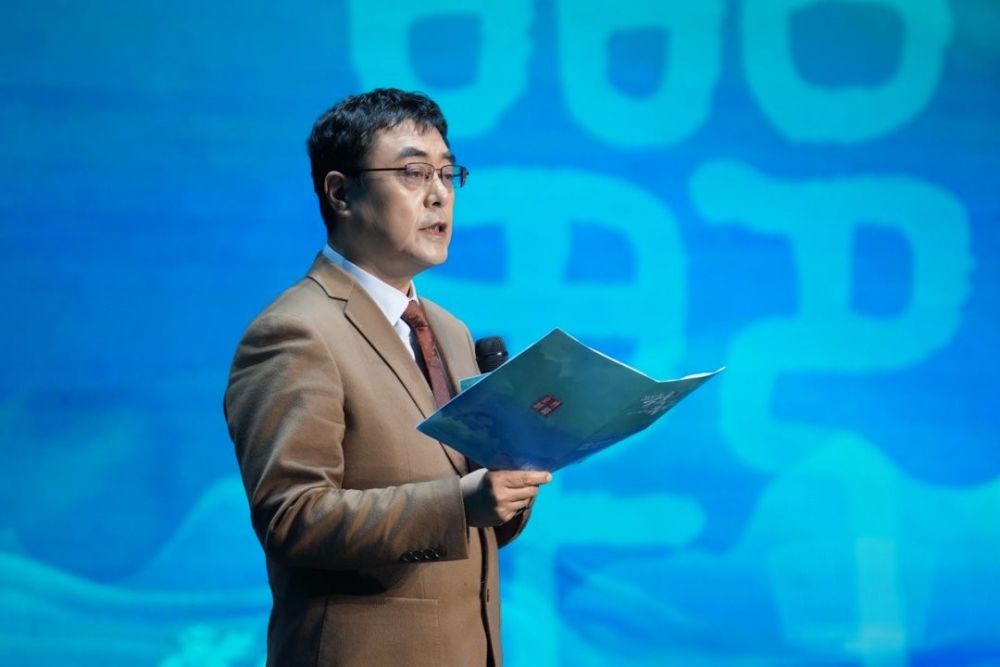图为中国传媒大学教授、博导,国家语言资源监测与研究有声媒体中心主任邹煜发布“2025年度成语”之“海纳百川”
