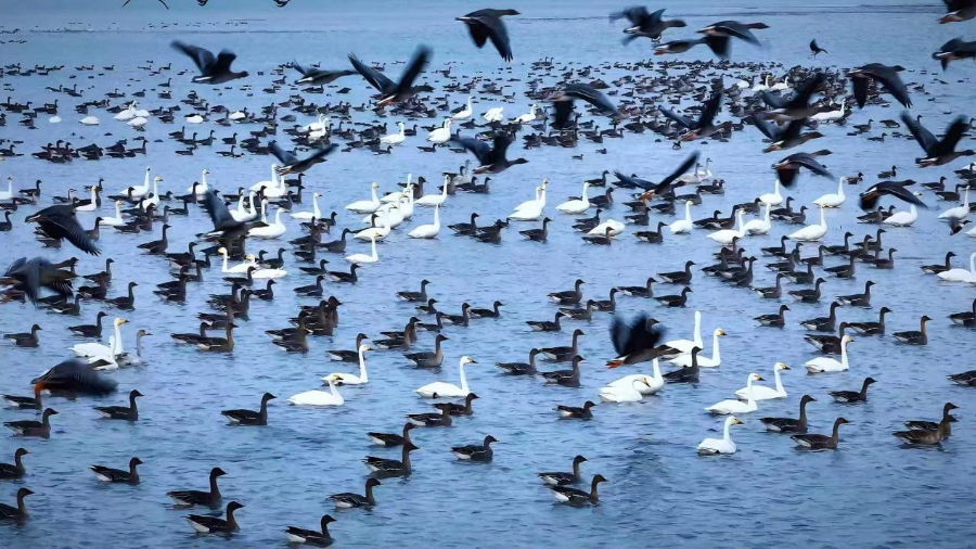 南大港湿地鸟类翔集。南大港湿地和鸟类省级自然保护区供图