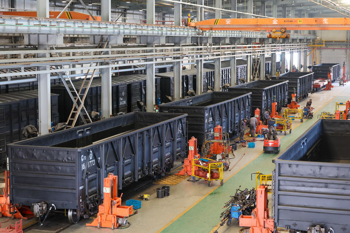 中车石家庄车辆有限公司总装车间。(张晓峰 摄)